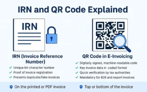 An e-invoice is a GST-compliant invoice that is uploaded to the IRP and validated by the GSTN. It receives a unique Invoice Reference Number (IRN) and a digitally signed QR code from the government portal.